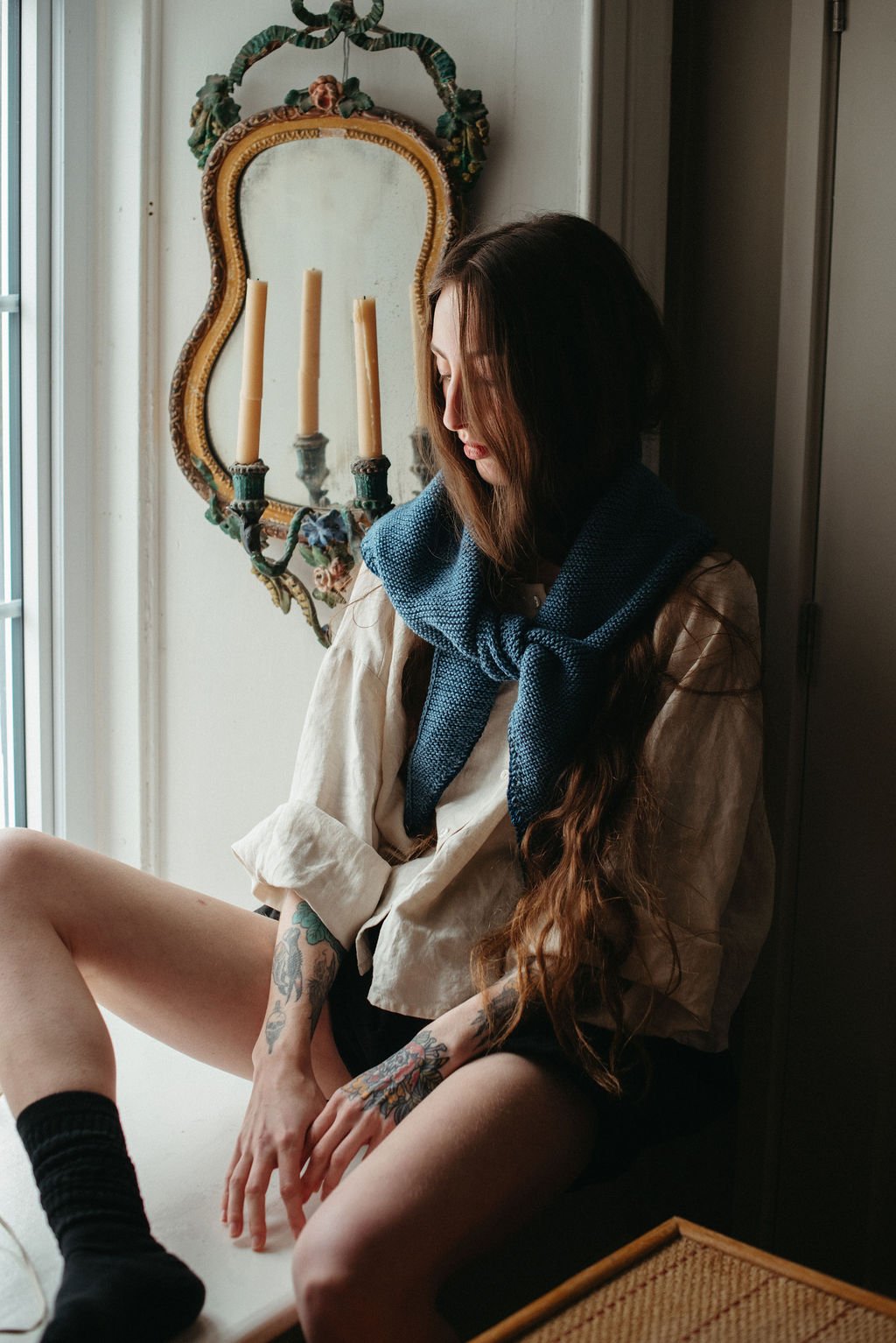 Pelham Kerchief, x-large fit, crochet edge (Limited Merino wool in Denim + more colurs)